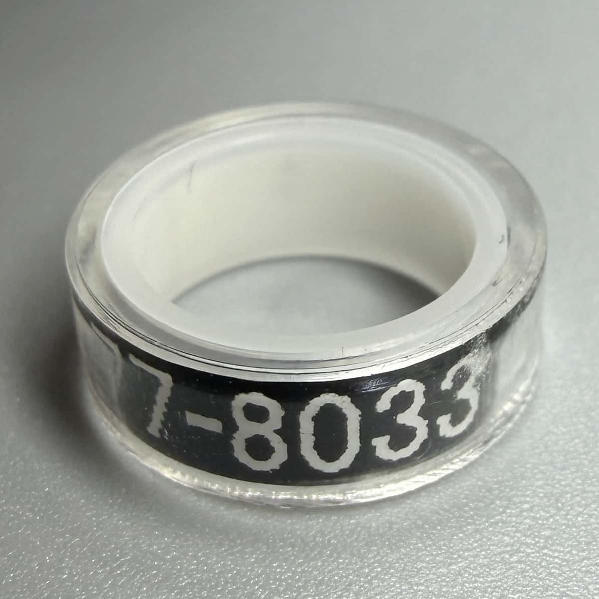 幅約4.0mm、内径約8.0mm、重さ約0.20gの軽量設計で、雛への負担を抑えます。