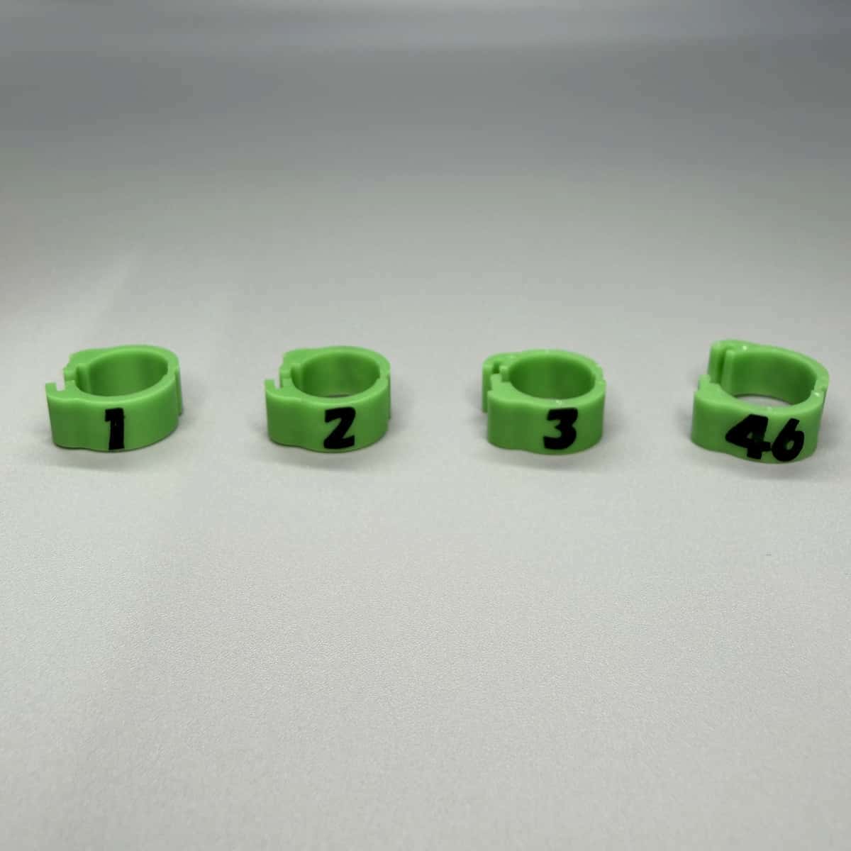 1から50までの数字がセットになっており、個体の管理やレース時の識別に最適です。