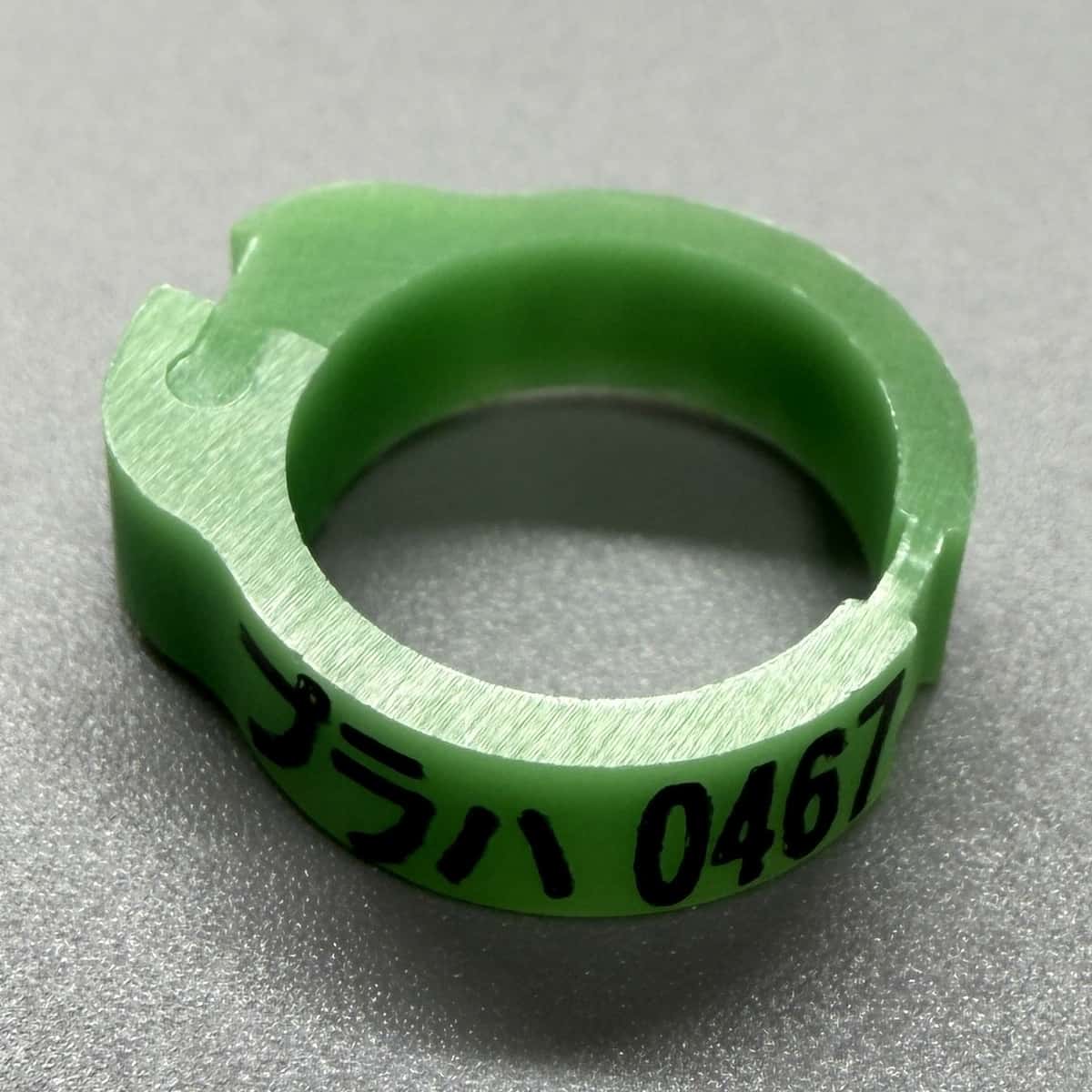 レース鳩の識別と管理に便利な私製環です。ICチップと同時に装着できるため、併用が可能です。