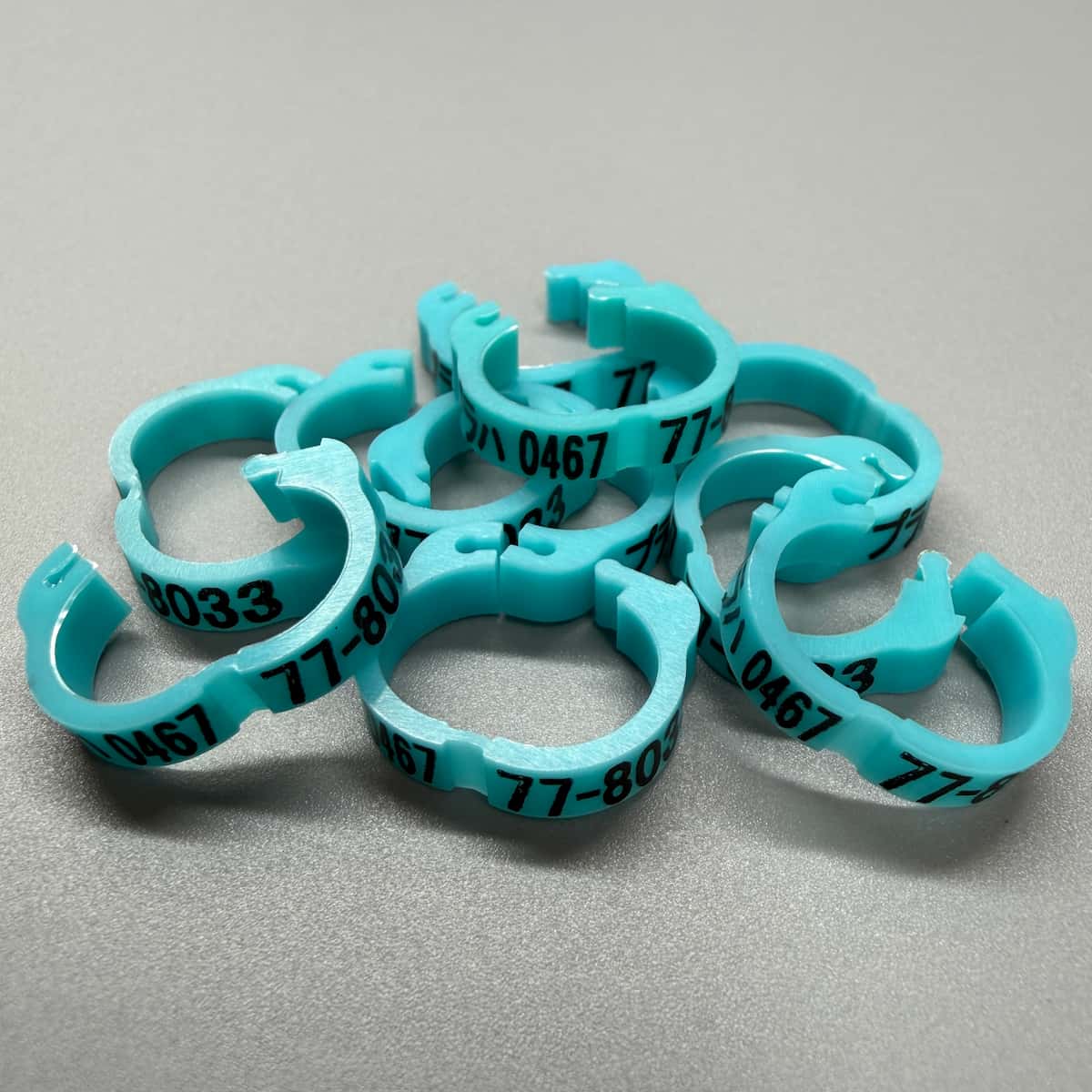 レース鳩の識別と管理に便利な私製環です。ICチップと同時に装着できるため、併用が可能です。