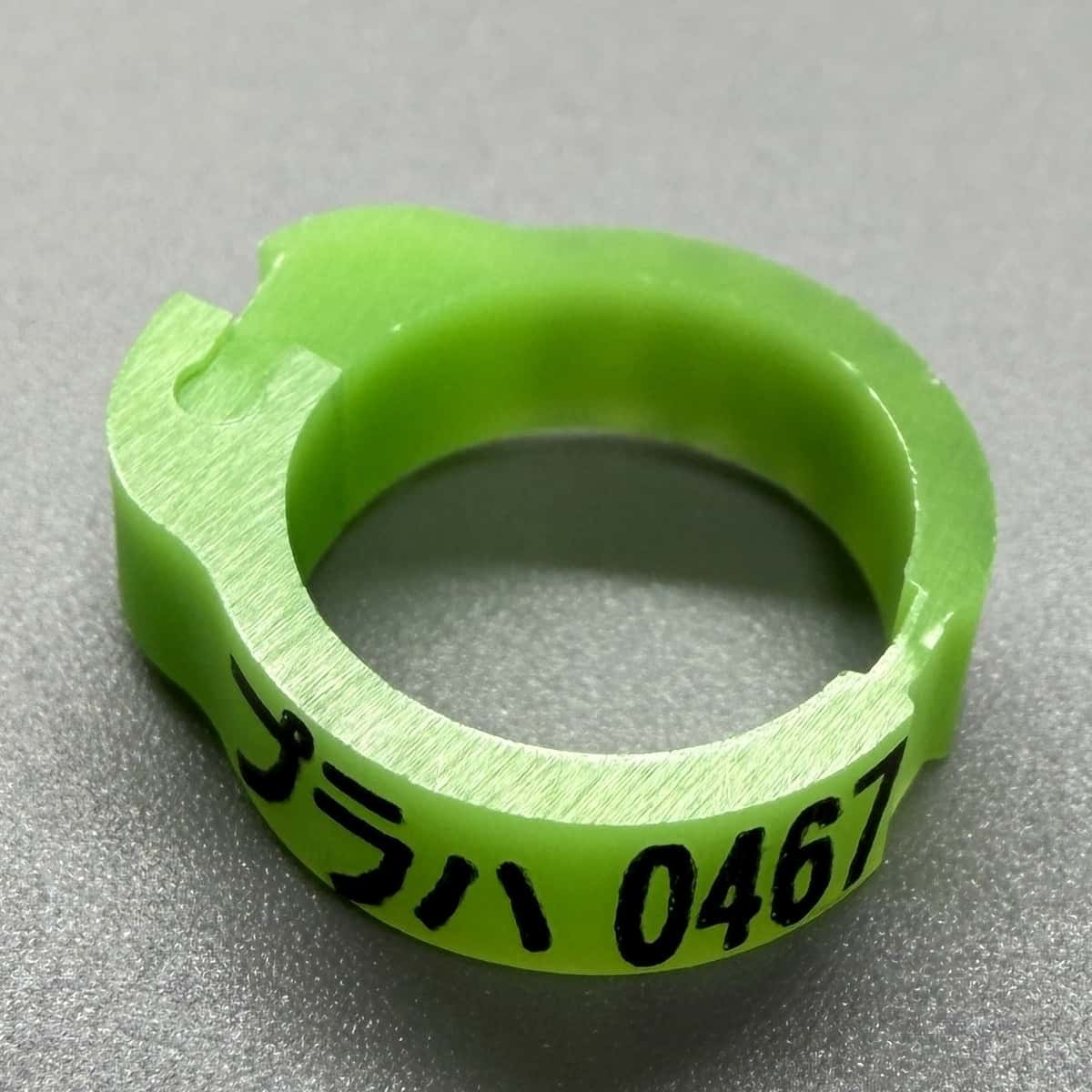 レース鳩の識別と管理に便利な私製環です。ICチップと同時に装着できるため、併用が可能です。