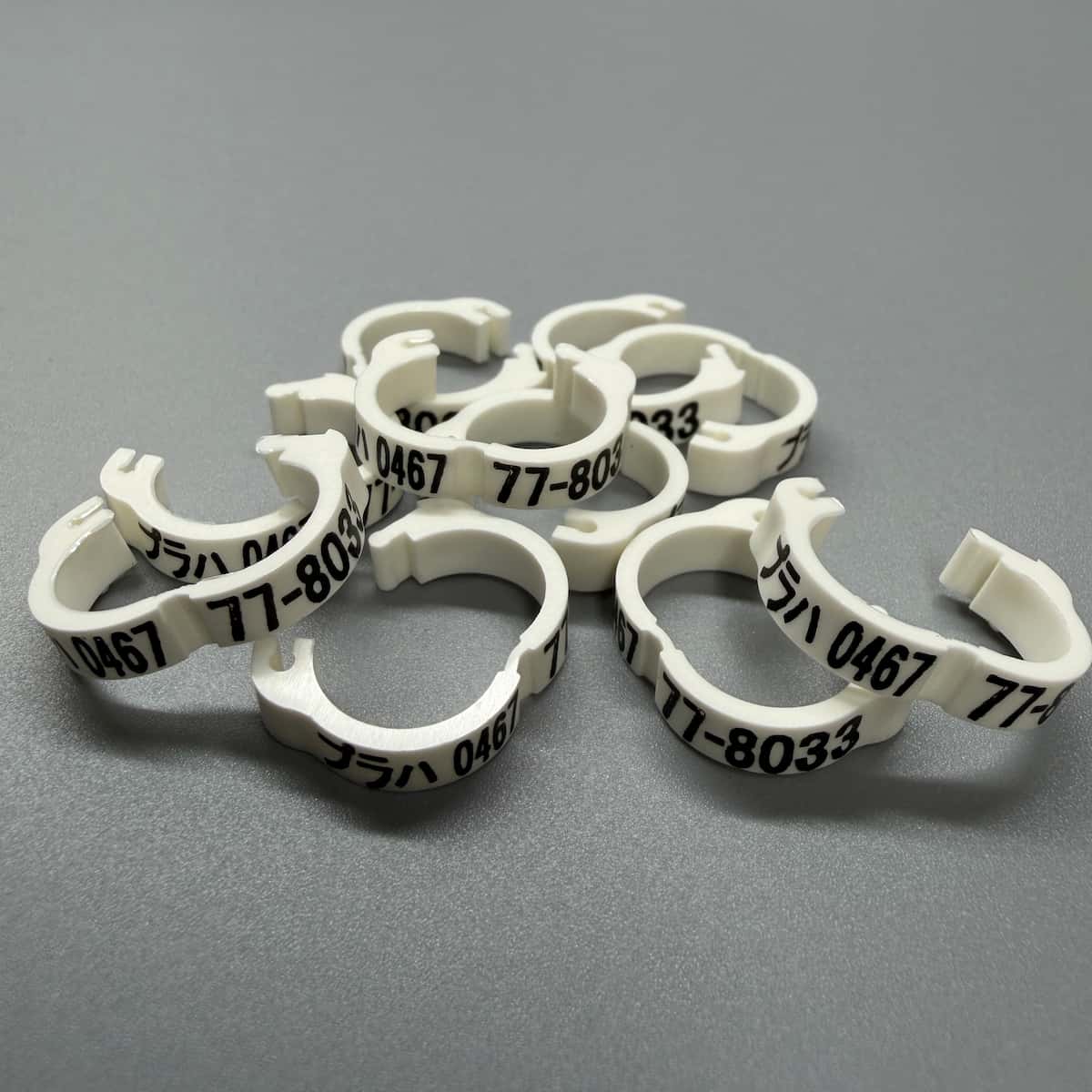 レース鳩の識別と管理に便利な私製環です。ICチップと同時に装着できるため、併用が可能です。